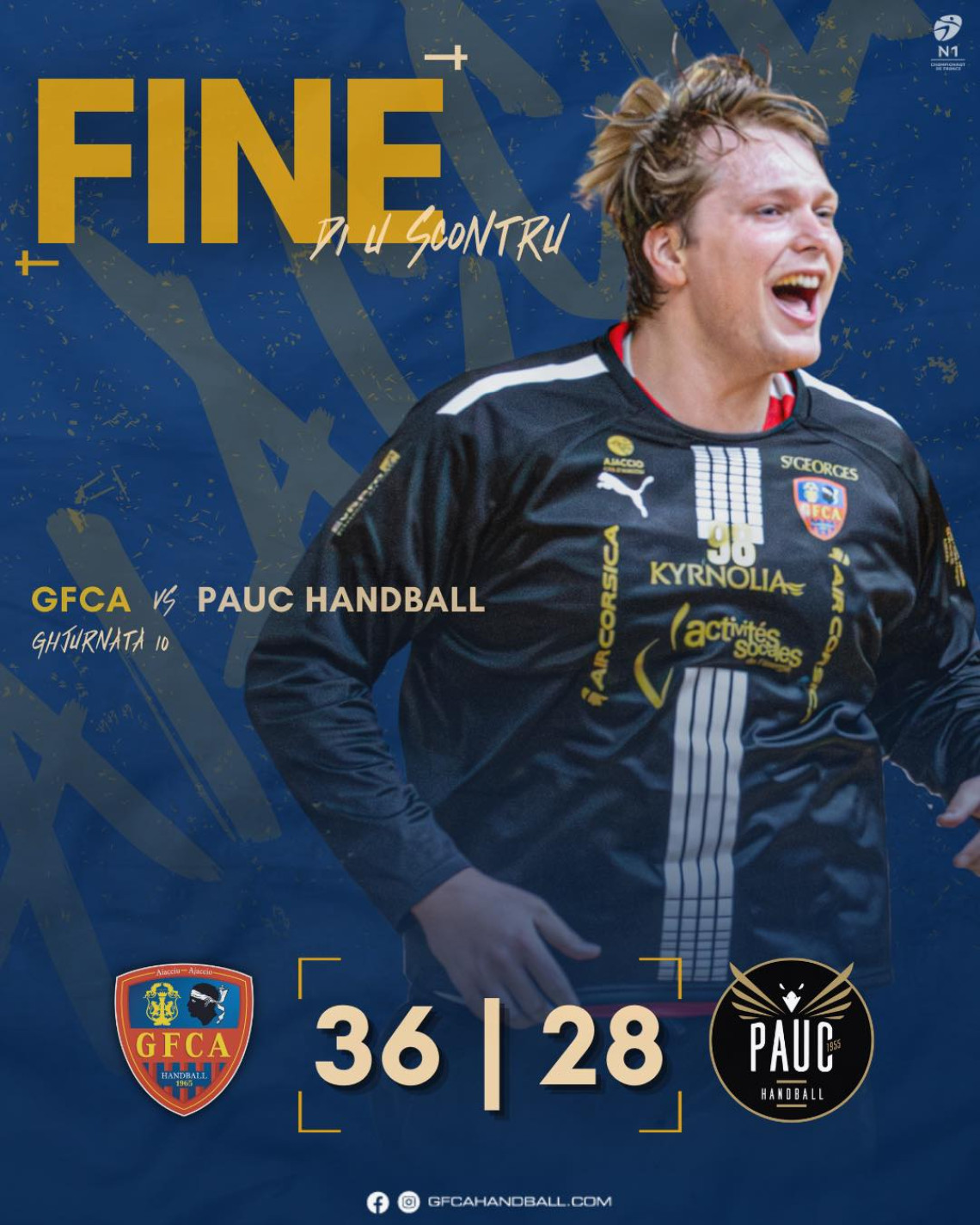 Nos gaziers pourtant derrière à la mi-temps (14-15), renversent la tendance et s’imposent sur le score de 36 à 28 au terme d’une grosse seconde période.Merci à tous d’être venu si nombreux !Forza Aiacciu, Forza GFCA !